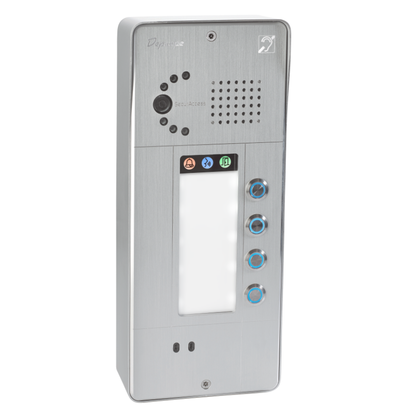 Le SecurAccess PMR 4 boutons est un interphone/portier téléphonique. Il est conforme à la loi ‘Handicap’. Ce produit est fabriqué en France et disponible en plusieurs couleurs.