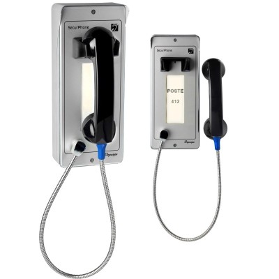 ÉTANCHES Les SecurPhones sont protégés contre la pénétration de poussière et les projections d’eau (IP65), ils peuvent peuvent être installés sous abri ou en extérieur.